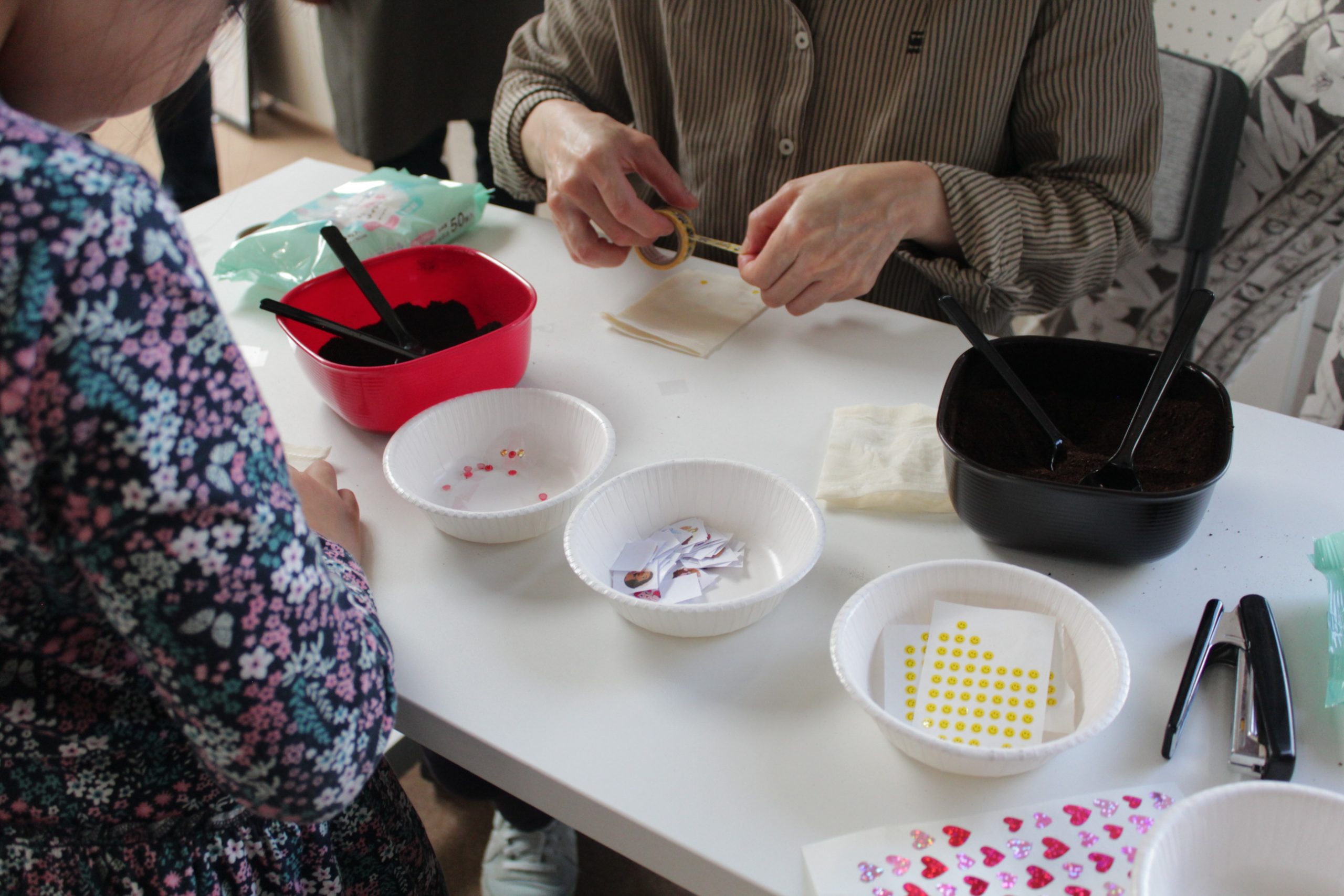 参加者からは、「環境のことや、海外の子どもたちへの支援など、意識しながら生活したい」「コーヒー豆を脱臭剤に活用できるということは知っていたけど、どう作るのかで止まっていたので、ぜひ家でも作って、いろんな所に使ってみたい」などのコメントを頂戴しました。